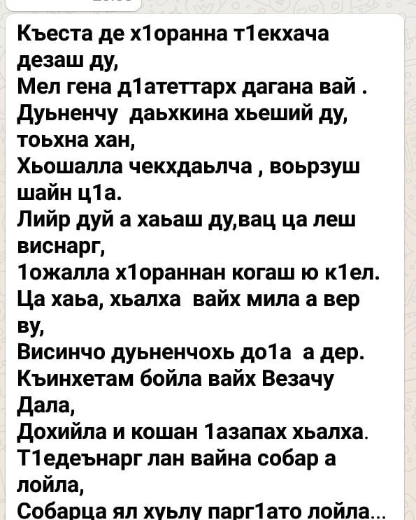 19.09.2019Айти-Махкарчу ишколан белхалоша даггара кадамбо Баутдин ИсмаьӀале. Аллах1а Шен къинхетамца Фирдоус-Ялсаманин еза хьаша йина т1еоьцийла, Баутдин Исмаь1ал, хьан нана. Цуьнан дакъа мел кхочучу шуна массарна а ийманца собар лойла! Халахетаран дакъа ду, кхин дан г1о дац цхьаьнне а... Дала Ялсаманехь цхьаьнатохийла вай ваьшна безачаьрца!