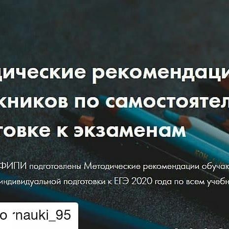 15.04.2020Федеральный институт педагогических измерений (ФИПИ) начал публикацию методических рекомендаций по организации КИМ досрочного периода, рекомендаций по организации индивидуальной подготовки к единому государственному экзамену (ЕГЭ) и основному государственному экзамену (ОГЭ). С 14 апреля на сайте ФИПИ опубликованы методические рекомендации по подготовке к ЕГЭ по 15 учебным предметам, в том числе отдельно по базовой и профильной математике.15 апреля для выпускников 9 классов будут опубликованы рекомендации по подготовке к обязательным предметам ОГЭ, русскому языку и математике, а 16 апреля – рекомендации по другим предметам ОГЭ.Также с 14 апреля на сайте ФИПИ опубликованы по два варианта контрольных измерительных материалов ЕГЭ по каждому предмету, подготовленных для 2020 года, а 15 апреля будут опубликованы варианты контрольных измерительных материалов ОГЭ по всем предметам. На примере этих вариантов выпускники смогут потренироваться в выполнении экзаменационных работ 2020 года. 21 апреля на сайте ФИПИ появятся ответы к открытым вариантам, чтобы будущие участники экзаменов смогли проверить себя.✅Методические рекомендации содержат советы разработчиков контрольных измерительных материалов ЕГЭ и ОГЭ и полезную информацию для организации индивидуальной подготовки к экзаменам. В них описана структура и содержание контрольных измерительных материалов, приведен индивидуальный план подготовки к экзамену, указаны темы, на освоение и повторение которых следует обратить особое внимание. Даны рекомендации по выполнению разных типов заданий, работе с открытыми банками заданий ЕГЭ и ОГЭ и другими дополнительными материалами, полезные ссылки на информационные материалы ФИПИ и Рособрнадзора.