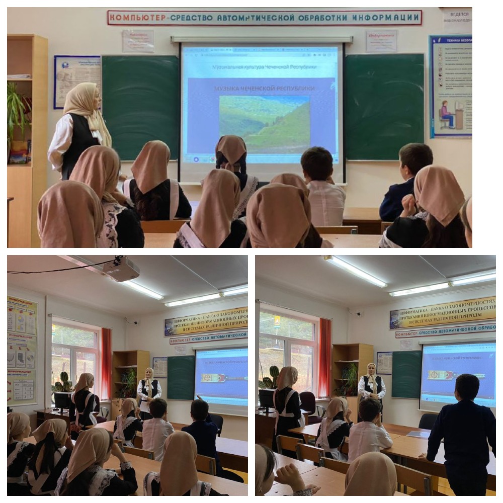 17.10.202217 октября учебная неделя в МБОУ «СОШ с.Айти-Мохк» началась с традиционной линейки с поднятием Государственного флага Российской Федерации и Государственного флага Чеченской Республики. «Внимание! Под Государственный флаг Российской Федерации – СМИРНО! Флаг внести!» – такими словами началась церемония поднятия флага. В составе знаменной группы - ребята с активной жизненной позицией и неравнодушными сердцами. На торжественной линейке были подведены итоги за предыдущую учебную неделю. Церемония продолжилась оглашением темы традиционных внеурочных занятий «Разговоры о важном» -«День музыки». Сегодня ребята обсуждали вопросы, связанные с историей и музыкальной культурой народов нашей страны. Для обучающихся 5 класса классный руководитель Арзимиева Х.В. подготовила видеоматериал «О музыке Чеченской Республики». Цель занятия: формирование у обучающихся умения слушать и понимать музыку, развитие познавательных интересов, повышение уровня эрудиции и культуры чеченского народа. Занятие началось с легенды о Тимуре. Согласно преданию, после ожесточенных боев пришёл полководец к Тимуру и сообщил о том, что земли чеченцев захвачены. Но в ответ спросил жестокий завоеватель: «Отняли ли вы у чеченцев дечиг-пондар?» — «Нет», — ответил полководец. «Тогда вы их не покорили», — сказал ему Тимур… На вопрос учителя почему Тимур так сказал, дети ответили словами А.А. Кадырова: «Без культуры нет нации». А дечиг –пондар -это один из главных символов музыкальной культуры чеченского народа. На занятии дети ознакомились с музыкальной культурой, песенной культурой, танцевальной культурой народа, а также ознакомились с композиторами и деятелями культуры нашего народа.