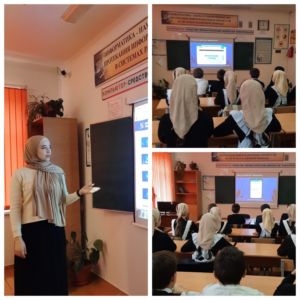 22.03.2023На базе «Точка роста» МБОУ «СОШ с.Айти-Мохк» учитель информатики Алимханова Х. А. 22.03.2023г провела мероприятие с учащимися 6 класса по цифровой грамотности и кибербезопасности в рамках проекта «Цифровой ликбез» с использованием материалов, размещённых на портале: https://digital-likbez.datalesson.ru. Учащиеся познакомились с интересной информацией и ресурсами сети Интернет, которые помогают в развитии современных школьников; узнали об опасностях, которые подстерегают их в информационной паутине, таких как вирусы и вредоносные программы, взломы и мошенничество и способах их избежать; получили навыки поведения в социальных сетях. Обсудили вопросы пользы и вреда Всемирной сети, правила поведения.