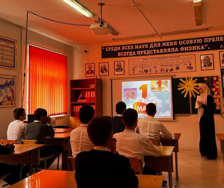 27.04.2023В целях патриотического воспитания, формирования чувства патриотизма, любви к своей Родине и уважения к людям разных профессий 27 апреля 2023 года в МБОУ «СОШ с. Айти-Мохк»классный руководитель 8 класса Бадагова 3.Н провела классный час на тему « История 1 мая» посвященный к празднику Весны и Труда