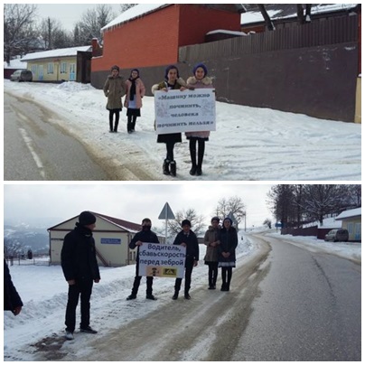 09.02.201709.02.2017г. учащиеся МБОУ «СОШ с.Айти-Мохк» провели акцию: «Водитель, береги жизнь детей». Дети вышли на дорогу с плакатами и призывали водителей придерживаться правил дорожного движения, раздавали им памятки.