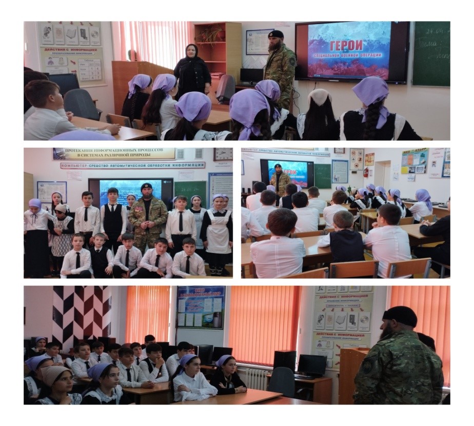 30.04.202430 апреля 2024 года в МБОУ «СОШ с.Айти-Мохк» с целью патриотической встречи - чтобы молодые люди получали информацию от первоисточника – непосредственного участника СВО, чтобы они знали всю правду о происходящих на Украине событиях, донести до учащихся, что сохранение того мира, за который сейчас борются наши ребята. Наши школьники встретились с участником СВО, выпускником нашей школы Борзиевым М.В. Он не давно приехал в краткосрочный отпуск из зоны боевых действий и по приглашению зашёл в родную школу, чтобы пообщаться с учителями и школьниками. У школьников была возможность прямого диалога с участником исторических событий современной России. Ребята, затаив дыхание, слушали рассказ героя, после чего стали задавать различные вопросы. Их интересовало буквально всё, даже мелочи. Например, ребята поинтересовались у выпускника о том, бывает ли страшно ему, как бойцы поддерживают друг друга, как проводят свободное время, в каких условиях они живут, как и чем питаются. На них боец отвечал предельно честно и открыто. Ребята услышали о буднях, о подвигах российских военнослужащих, об участии в военных спецоперациях.