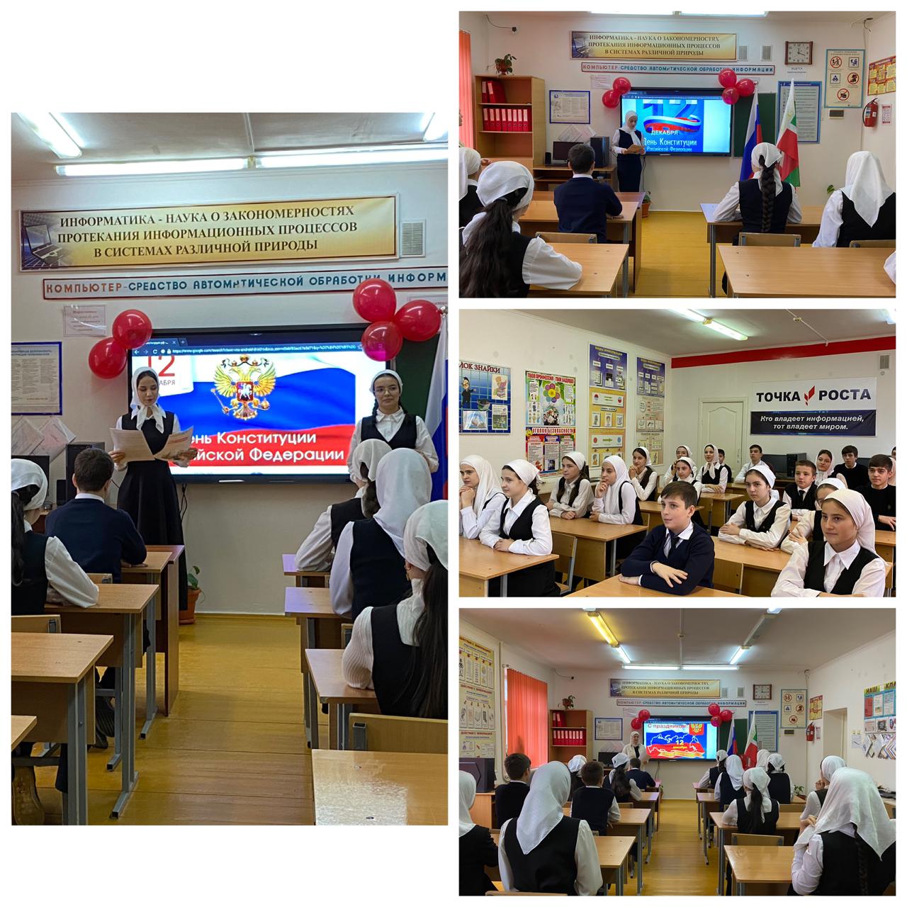 06.12.2024Во взаимодействии с Отделом в Ножай-Юртовском районе УФСБ России по Чеченской Республике 06.12. 2024г. в МБОУ "СОШ с. Айти-Мохк" проведены тематические классные часы, посвящённые Дню Конституции РФ