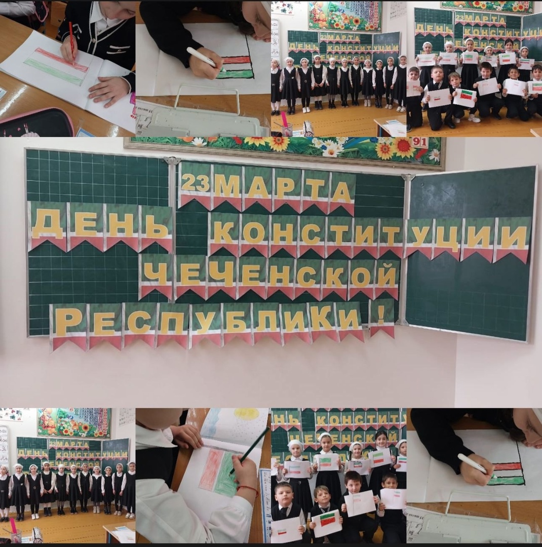 20.03.2025МБОУ"СОШс.Айти-Мохк"В 1 классе провели классный час на тему:"День Конституции Чеченской республики."Цель: сформировать понятия «закон, порядок, право»; дать представление о Конституции ЧР; ознакомить учащихся с символикой: флагом, гербом, гимном; воспитывать гордость за свою республику.