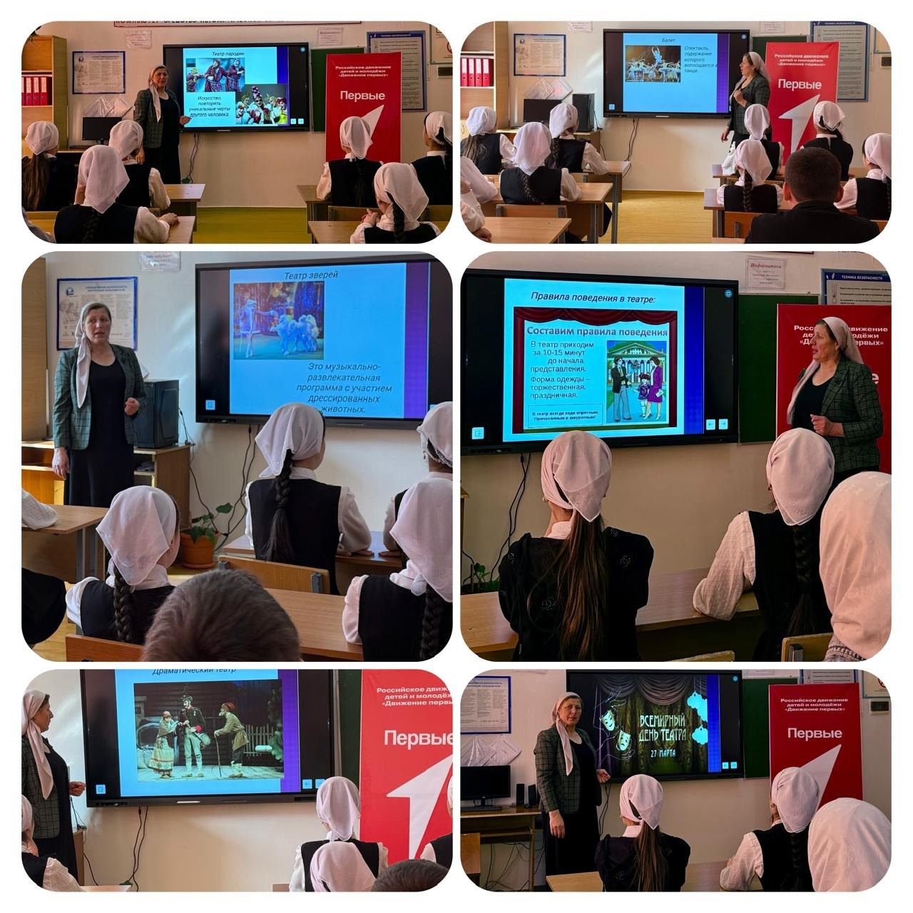 26.03.2025Всемирный день театра – праздник всех театральных деятелей и ценителей этого искусстваТеатральное искусство является одним из древнейших искусств в истории, оно вносит большой вклад в культурное развитие общества. А начиная с 1961 года 27 марта все театралы отмечают профессиональный праздник.В преддверии празднования Международного Дня театра советником директора по воспитанию Борзиевой Я.Ш. для учащихся 5 класса было проведено внеклассное мероприятиемРебята узнали об истории возникновения театра, профессиях людей, которые работают в театре, вспомнили правила поведения в театре, проверили свои знания, решая кроссворд.