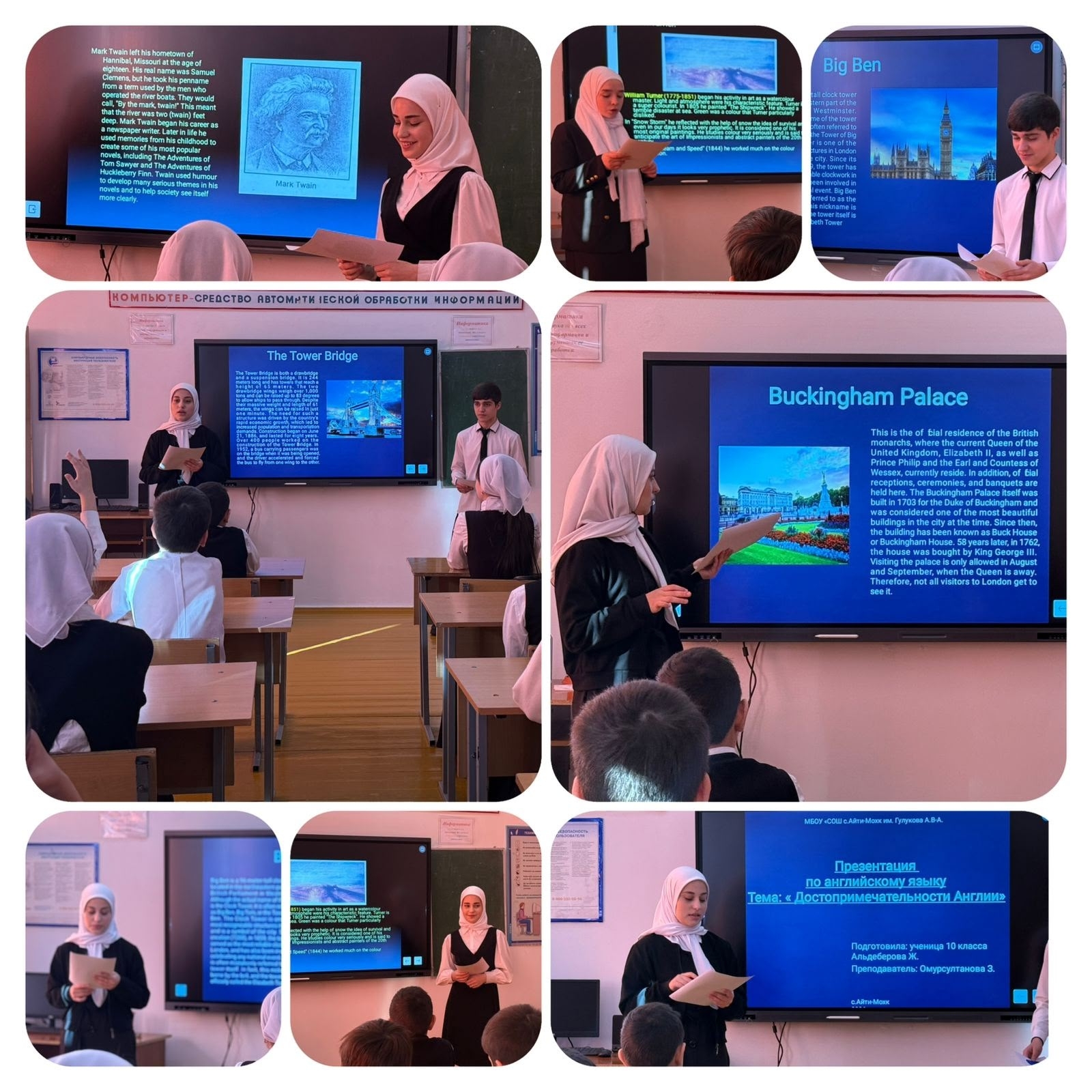 В рамках недели английского языка, обучающиеся 10-11х классов защитили свои проекты, где они рассказывали о достопримечательностях и об известных писателей, художников Англии и Америки.