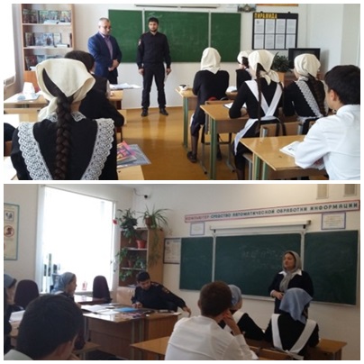 05.10.20185.10. 2018 года в МБОУ «СОШ с.Айти-Мохк» была проведена встреча с инспектором ПДН ОМВД России по Ножай-Юртовскому району младшим лейтенантом Албековым Муратом Нур –Магомедовичем. На встрече говорили о профилактике правонарушений. Мурат Нур -Магомедович провел беседу с обучающимися, рассказал об административной и уголовной ответственности за совершение преступлений и правонарушений, о вреде употребления спиртных напитков и наркотических средств. Он также предупредил всех учащихся, что нельзя находится на улице после девяти часов вечера.