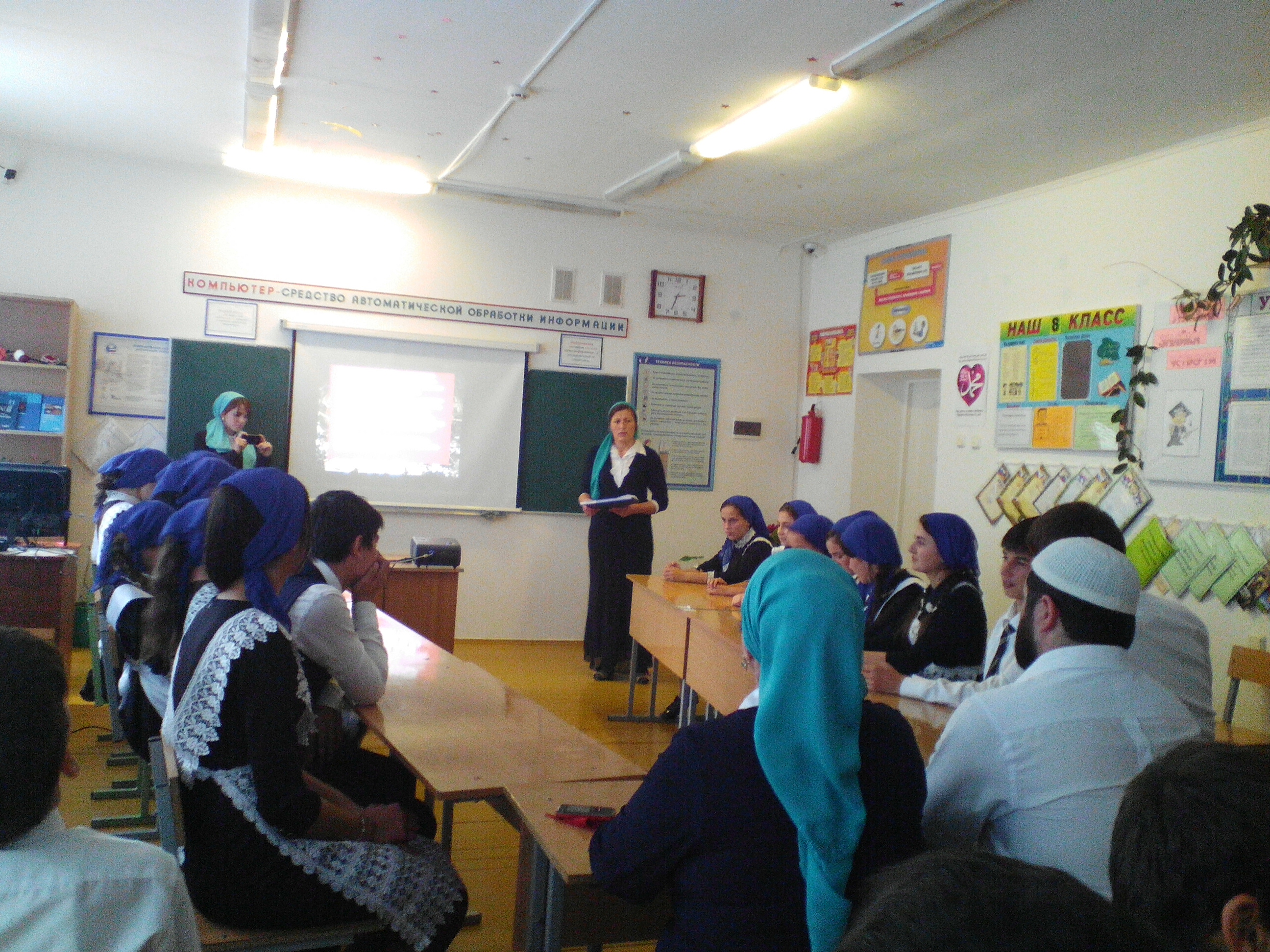20.10.2015В МБОУ «СОШ с. Айти-Мохк Ножай-Юртовского муниципального района» с учащимися 8-11 классов прошел "круглый стол" на тему: «Терроризм-угроза всему обществу». Целью "круглого стола" являлась повышение роли правоохранительных и специальных органов, а также гражданского общества по предотвращению проявлений экстремизма и терроризма. В ходе обсуждений участники "круглого стола" отметили, что такие мероприятия по профилактике борьбы с терроризмом и экстремизмом крайне необходимы в наши дни. "К сожалению, терроризм стал явью наших дней, поэтому призываем вас быть пристально бдительными. Сегодня наибольшую реальную угрозу для общества представляет терроризм, стремительный рост которого приносит страдания и гибель большому количеству людей. Усиленно противостоять угрозе терроризма можно только тогда, когда подавляющее большинство граждан владеют основами знаний по предупреждению террористических актов и защите при их возникновении»,- отметил в своем выступлении педагог-организатор по ДНВ Ахмадов Д.У. Наставления имама мечети Ахмадова Д.У. и педагога-психолога дети слушали внимательно, и задавали им интересующие их вопросы. Проведённый "круглый стол" является частью, постоянно осуществляемой школой работы по духовно-нравственному и патриотическому воспитанию подрастающего поколения. Ответственный: педагог-психолог Борзиева Я.Ш.
